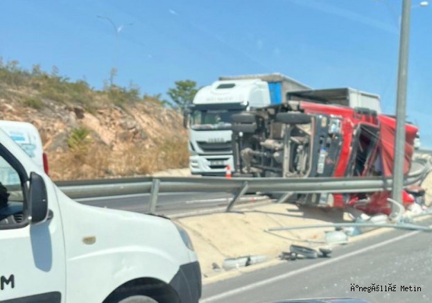 Direksiyon hakimiyetini kaybeden sürücü, aracın kontrolden çıkmasına neden oldu ve tır orta refüje devrildi. Kazada, tır sürücüsü ile yanında yolcu konumunda bulunan kişi yaralandı.
