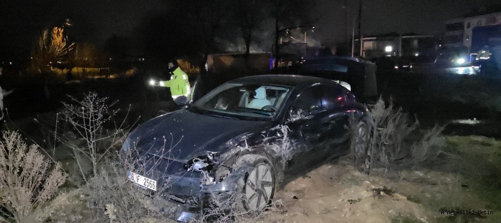 Edinilen bilgilere göre, Süleymaniye Mahallesi Ahmet Türkel Çevre Yolu’nda seyir halindeki 16 NE 897 plakalı otomobil ile 16 KBY 19 plakalı cipin yarış yaptığı öne sürüldü. Bu sırada kontrolden çıkan otomobil karşı şeride geçerek, kendi şeridinde ilerleyen 16 F 2566 plakalı otomobile çarptı. Çarpmanın etkisiyle savrulan araç yol kenarındaki tarlaya girdi.