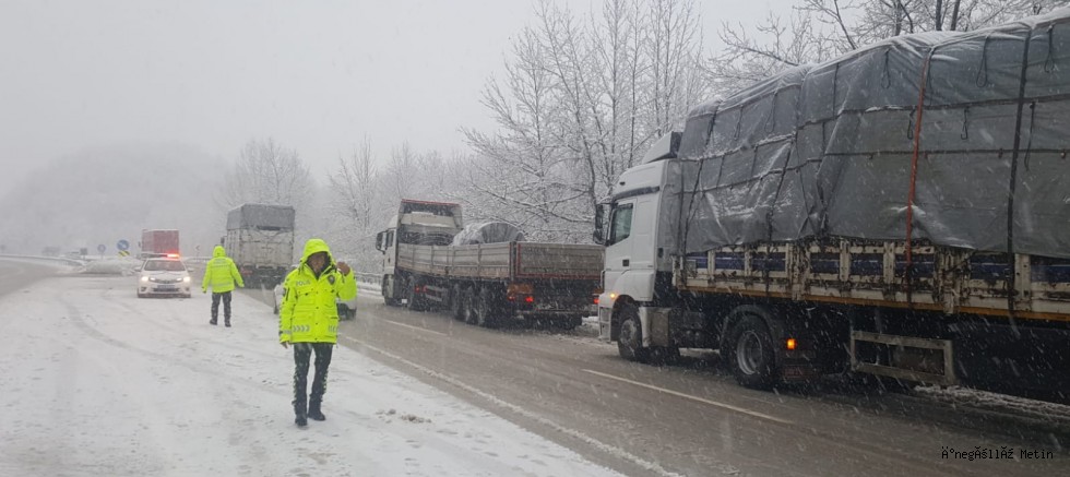 Edinilen bilgilere göre, Mezitler bölgesinde etkili olan kar yağışı nedeniyle çeşitli yerlerde TIR kazaları meydana geldi. Trafik ekipleri kaza yapan araçların kaldırılmasıyla alakalı çalışmalarını sürdürürken, İnegöl'den Ankara istikametine doğru ağır tonajlı araçların geçişine şu anlık izin verilmediği bilgisine ulaşıldı.