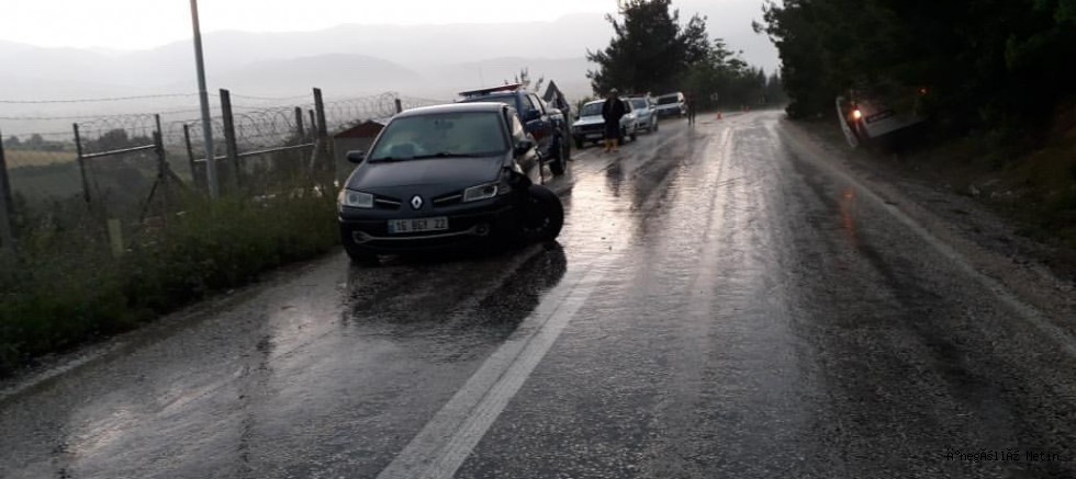 Edinilen bilgilere göre kaza İnegöl’e bağlı kırsal Akbaşlar Mahallesi’nde meydana geldi. Özel otomobil ile ticari aracın çarpışması sonucu, ticari araç ağaçlık alana daldı.