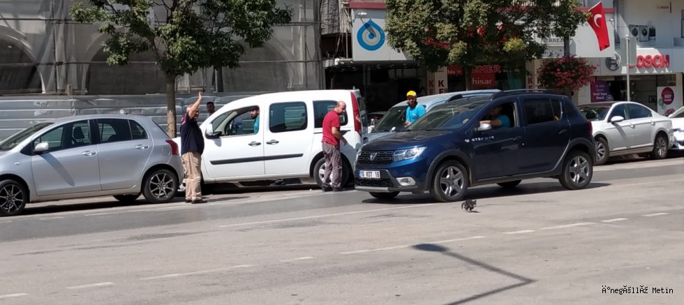 Atatürk Bulvarı üzerinde park halinde olan aracının başına gelen şahıs, aracının altından kedi sesi geldiğini fark edince aracını haraket ettiremedi. Durumu fark eden otopark görevlileri ve duyarlı vatandaşlar aracın yanına giderek kediyi, lastiğin üst kısmındaki girdiği alandan çıkardı.Vatandaşların elinden kurtulan yavru kedi caddeye doğru yönelince az kalsın cadde üzerinde seyreden başka bir araç tarafından eziliyordu.