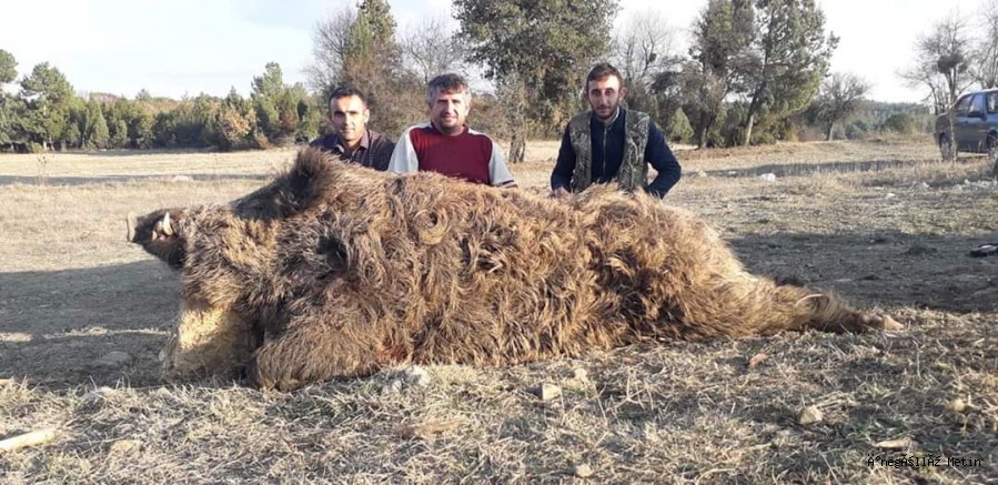 Harmancık Avcılar ve Atıcılar Kulübü üyeleri, köylülerin talebi üzerine sürek avına çıkarak 250 kiloluk devasa bir domuz avladı.