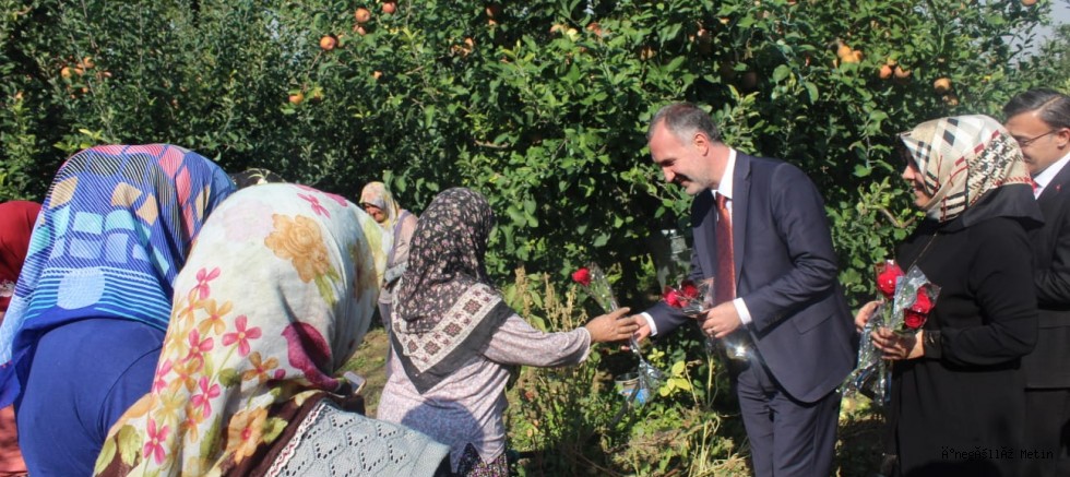 Belediye Başkanı Alper Taban, 15 Ekim Dünya Kadın Çiftçiler Günü nedeniyle bugün Çeltikçi Mahallesinde bulunan elma bahçelerinde hasat yapan kadınları ziyaret etti. Eşi Birnur Taban ve kızı ile AK Partili yöneticilerin katılımıyla tarlada çalışan çiftçi kadınları ziyaret eden Taban, günün anısına çiftçi kadınlara gül takdim etti. Ayrıca tatlı ikramı da yapıldı.