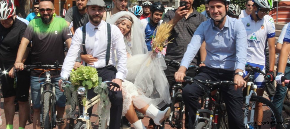 Yapılan açıklamaların ardından bisikletli düğün konvoyu yola çıktı. Birçok vatandaş bisikletli düğün konvoyunu görünce şaşkınlığını gizleyemezken, yapılan etkinlik tam not aldı.