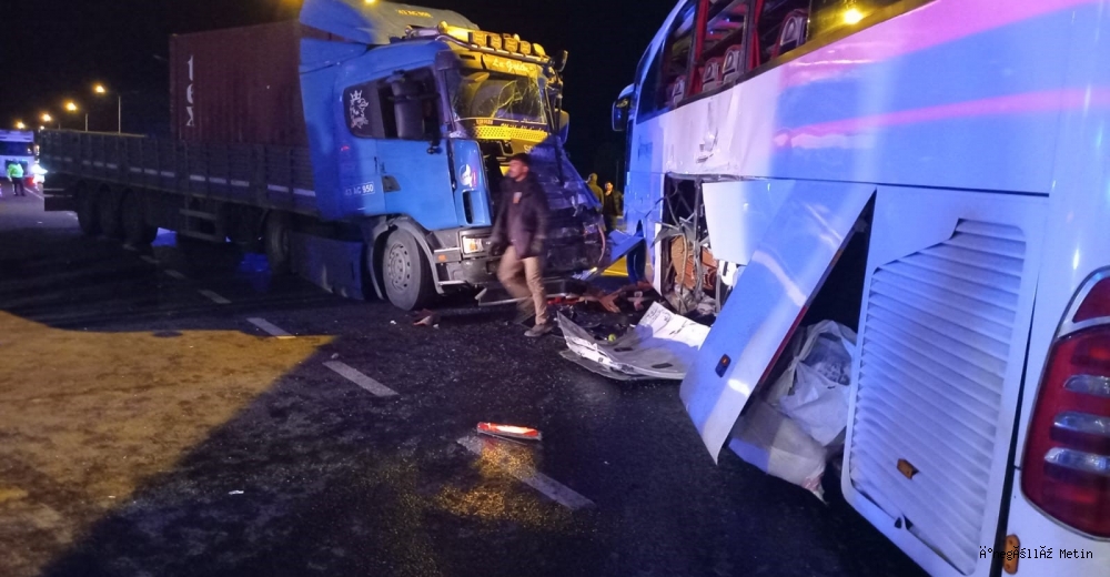 Edinilen bilgilere göre, Bursa-Eskişehir kara yolu Sarar AVM önünde sürücülerinin kimliği henüz belirlenemeyen 32 HT 160 plakalı yolcu otobüsü ile 43 AC 950 plakalı tır çarpıştı. İhbar üzerine olay yerine çok sayıda sağlık ve polis ekibi sevk edildi. Kazada, her iki aracın sürücüleri ile birlikte otobüste yolcu olarak bulunan 20 kişi yaralandı.