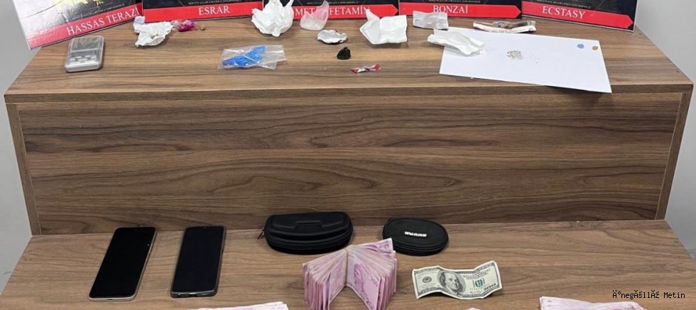 Yapılan aramalar sonucunda 25 gram sentetik kannobinoid maddesi, 70 gram AMG maddesi, 8 parça halinde 16 gram metamfetamin maddesi, 3 parça halinde 2,60 gram esrar maddesi, 3 parça halinde 2,80 gram sentetik kannobinoid maddesi, 2 adet extacy hap, 1 adet hassas terazi ile 65 bin TL ve 2 adet telefon ele geçirildi. Operasyonda sonucunda uyuşturucu tacirleri Serkan Ş., Mithat Ç., Sedat B., Tanju Y. ile Hasan Ş. yakalandı. Şahıslar sorgulamanın ardından adliyeye sevk edildi.