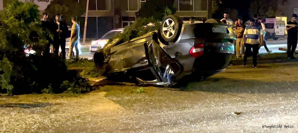 Çarpmanın şiddetiyle takla atan otomobil karşı şeride devrildi.