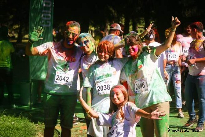 Beş kilometrelik parkurun belli noktalarındaki "renk istasyonları"nda katılımcıların üzerine sarı, pembe, mor ve yeşil toz boyalar atıldı.