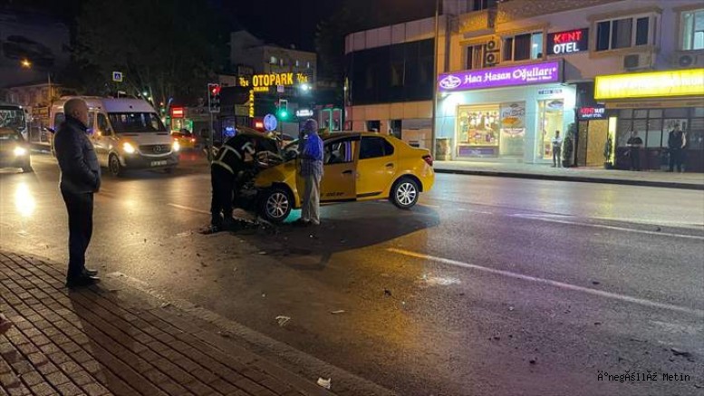 Alınan bilgiye göre, sürücüsünün kimliği henüz öğrenilemeyen 16 BH 040 plakalı minibüs, Hasan M. idaresindeki 16 T 0032 plakalı ticari taksiye çarptı.