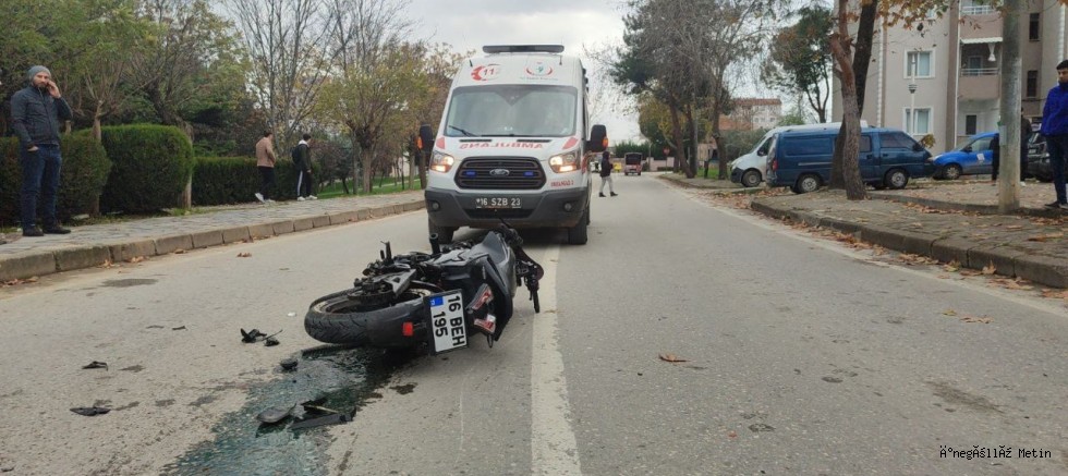 Arapzade Mahallesi'nde seyreden Onur S. (24) idaresindeki 16 BEH 195 plakalı motosiklet, Açıkhava Tiyatrosu yanındaki yolda seyrederken karşı yönden gelen Muhammet B'nin (42) kullandığı 16 T 4738 plakalı taksiyle çarpıştı.