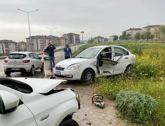Meydana gelen kazada araçlar yoldan çıkarken, sürücüler yaralandı.
