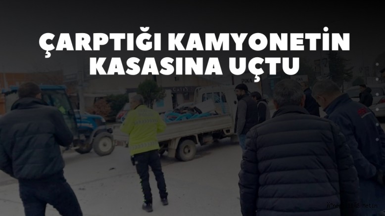 Çarpmanın etkisi ile motosiklet sürücüsü motosikletin üzerinden fırlayarak kamyonet kasasının içine uçtu.