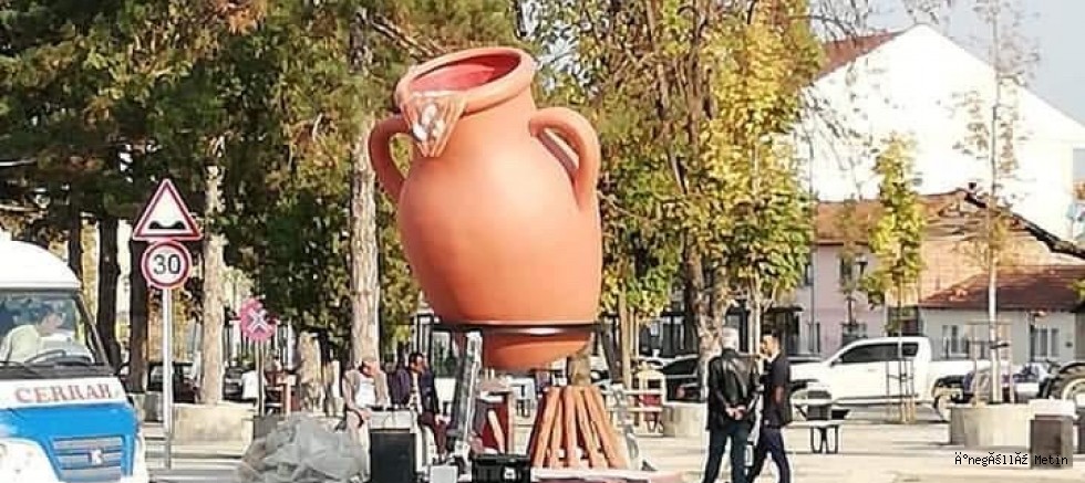 Vatandaşlar mahalle merkezine, ‘Cerrah Kuru Fasulyesini’ simgeleyen çömlek heykelin dikilmesinden oldukça mutlu oldular.