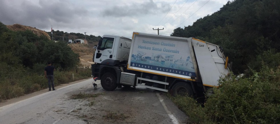 Edinilen bilgilere göre kaza Yeniyörük Mahallesi yolu üzerinde meydana geldi. Mahallenin sınırları içerisinde bulunan katı atık depolama alanına çöp bıraktıktan sonra İnegöl’e doğru dönmekte olan sürücü Gökay E. (27) yönetimindeki 16 PF 596 plakalı çöp kamyonu virajlı yolda yağış nedeniyle kontrolden çıkarak yol kenarına uçtu. Kaza sonucunda sürücü ile yanında bulunan temizlik işçisi Saffet F. (39) yaralandı.
