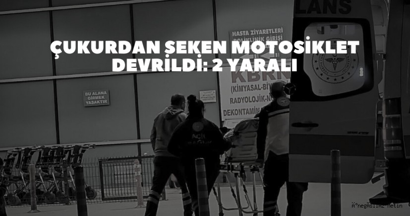 Çukurdan sekerek devrilen motosikletin sürücüsü ile arkasında bulunan Osman P. (50) yaralandı.
