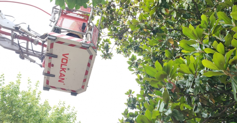 Cuma mahallesi Atatürk Bulvarı üzerinden taksi durağının önündeki ağaçta mahsur kalan kuşu itfaiye ekipleri kurtardı.