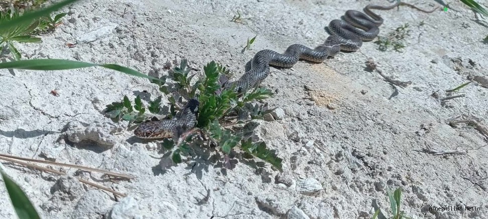 Yılanın, Ege Bölgesi’nde DENİsık görülen ve zehirsiz olan Bozkır yılanı (Dolichophis caspius) olduğu tahmin ediliyor.