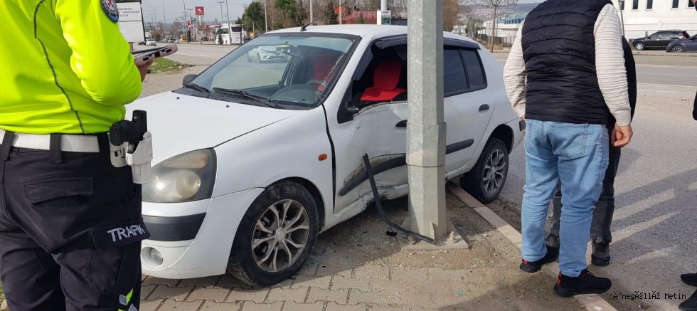 Edinilen bilgiye göre kaza İnegöl Bölge Trafik noktasında meydana geldi. Abdul Gaffar U. yönetimindeki 16 KLA 51 plakalı otomobil, kontrolden çıkarak direğe çarptı. Çarpmanın etkisiyle maddi hasar alan otomobildeki sürücü yaralandı.