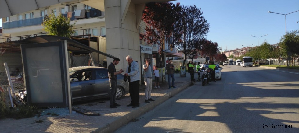 İnegöl-Alanyurt yolu üzerinde kontrolünden çıkan otomobil otobüs durağına daldı.