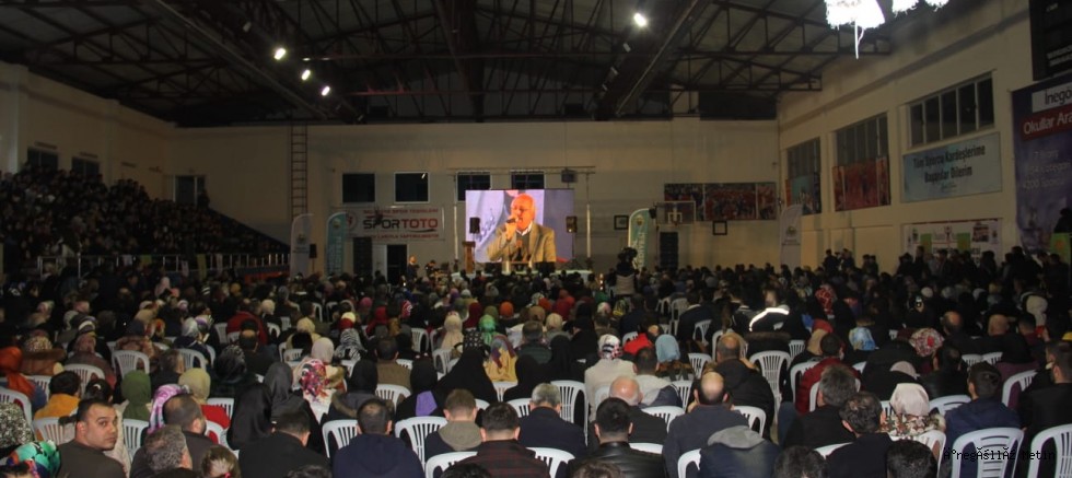 Bu kez program Belediye Spor Salonunda gerçekleştirildi. Pazartesi akşamı 20.00’da başlayan “Diriliş ve Direniş Kalemiz Aile” konulu seminere, çok sayıda vatandaş katıldı. Salon tamamen dolarken, Hayati İnanç da bu kalabalığa aile konusunda önemli bilgi ve mesajlar verdi. Yüzlerce vatandaş Hayati İnanç’ın seminerini takip etmek için salona akın ederken, Belediye Başkanı Alper Taban ile bazı meclis üyeleri ve siyasi parti temsilcileri de programı izledi.