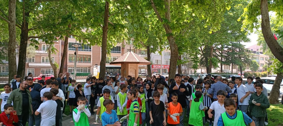 Dünya Çevre Günü'nde Kuğulu Park mevkiinde etraftaki çöpleri toplayan Dumlupınar Ortaokulu öğrencileri, 'çevreyi temiz tutalım' mesajı verdi.