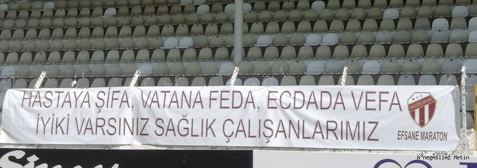 Efsane Maraton Tribünleri, pandemi nedeni ile tribünlerdeki yerini alamazken tribünlere astığı, “Hastaya şifa, vatana feda, ecdada vefa. İyi ki varsınız sağlık çalışanlarımız” yazılı pankart gözlerden kaçmadı.