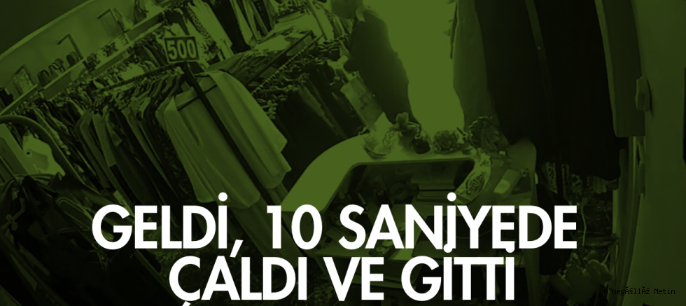 Olay, Bursa'nın İnegöl ilçesi Cuma Mahallesi Kuyumcular Çarşısı'nda meydana geldi. Güvenlik kameralarına yansıyan görüntülerde, mağazaya giren bir kadın, askıdaki elbiseleri incelemeye başladı. Şüpheli, gözüne kestirdiği giysiyi alıp 10 saniye içerisinde mağazadan çıktı.
