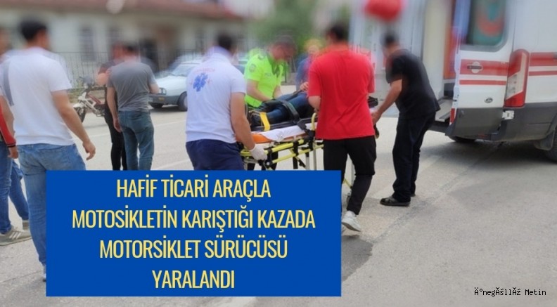 Mahmudiye Mahallesi Lider Sokak üzerinde hafif ticari araç ile motosikletin karışmış olduğu kazada motorsiklet sürücüsü yaralandı