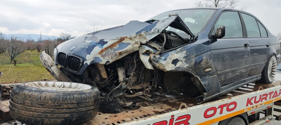 Sürücü Seçkin D. (29) idaresindeki 35 V 9738 plakalı otomobil, kontrolden çıkarak aynı yönde seyreden Hakan H. (43) yönetimindeki 16 F 9909 plakalı TIR'a çarptı. Çarpışmanın etkisiyle otomobil sürücüsü ve araçta bulunan Coşkun Ş. (32) ile Melih Ç. (22) yaralandı.