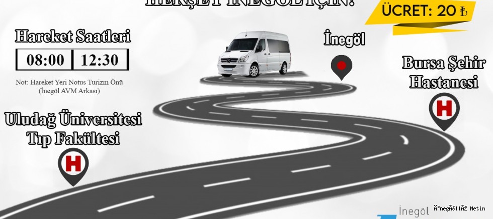 İnegöl Express ulaşımdan yapılan açıklamada “02 Mart 2020 Pazartesi tarihinden itibaren İnegöl kalkışlı Bursa Şehir Hastanesi ve Uludağ Üniversitesi Tıp Fakültesi seferlerimiz başlayacaktır. Hafta içi her gün hizmet verecek olan araçlarımız Notus Turizm(Eski Garaj Yolu) önünden kalkacaktır. Araç kalkış saatlerimiz 08:00 ile 12:30 saatlerindedir. İnegöl'e dönüş saatleri 13:00 ile 17:30 saatlerindedir.” İfadeleri yer aldı.