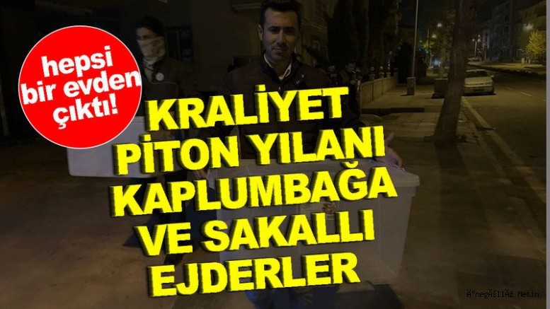 Aksaray'da bir evde ülkeye yasa dışı yollardan sokulan kraliyet piton yılanı, yumuşak kabuklu Çin kaplumbağası, sakallı ejder ile 9 yavrusu ele geçirildi.