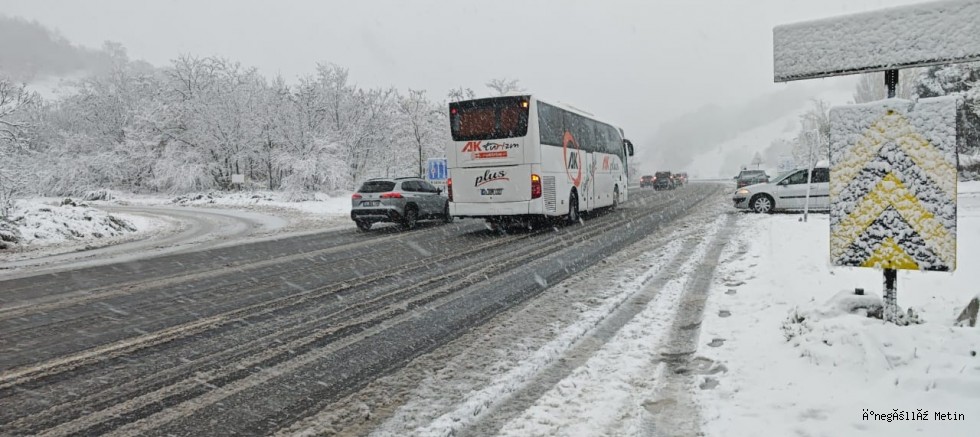 Bursa-Ankara kara yolunda başlayan kar nedeniyle ulaşım güçlükle sağlanıyor.