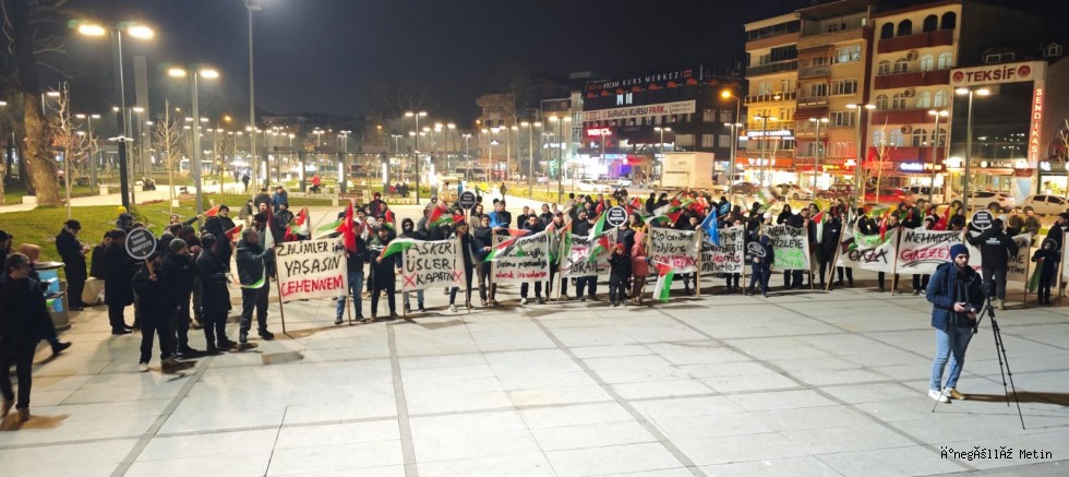 Etkinliğe katılan vatandaşlar ellerinde Filistin bayraklarıyla desteklerini gösterirken, program dualarla sona erdi.