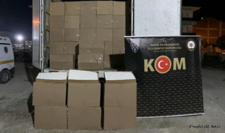 İnegöl'de bir kamyonda 9 milyon 450 bin makaron ele geçirildi, gözaltına alınan sürücü tutuklandı.