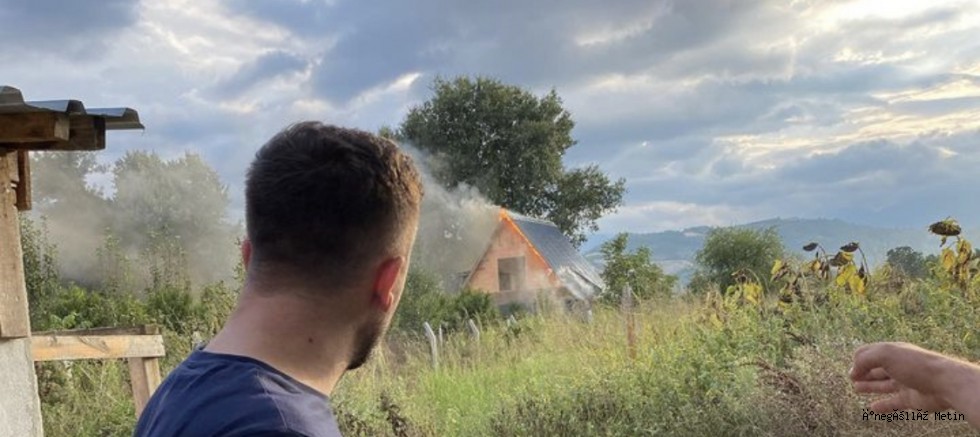 Arazi içinde bulunan tek katlı evde henüz bilinmeyen bir nedenden dolayı yangın meydana geldi.