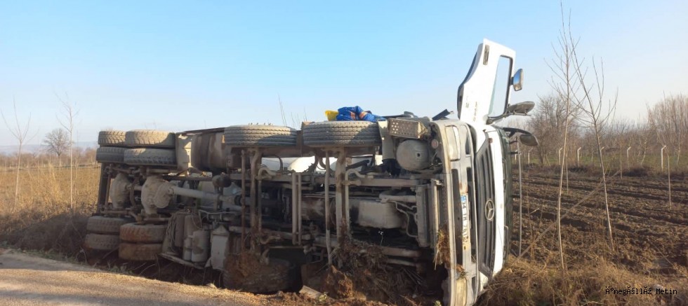 Edinilen bilgilere göre, Y.Ö.K. (25) yönetimindeki 34 TM 7819 plakalı beton mikseri, sürücünün direksiyon hakimiyetini kaybetmesi sonucu devrildi. Kazada, sürücü hafif yaralanırken, araçta maddi hasar meydana geldi.