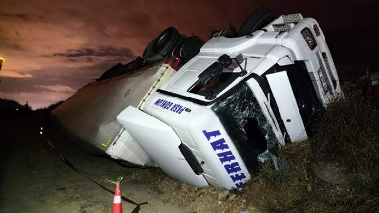 Ali A (51) idaresindeki 33 ADV 18 plakalı mobilya yüklü tır, sürücüsünün direksiyon hakimiyetini kaybetmesi sonucu yoldan çıkarak şarampole devrildi.