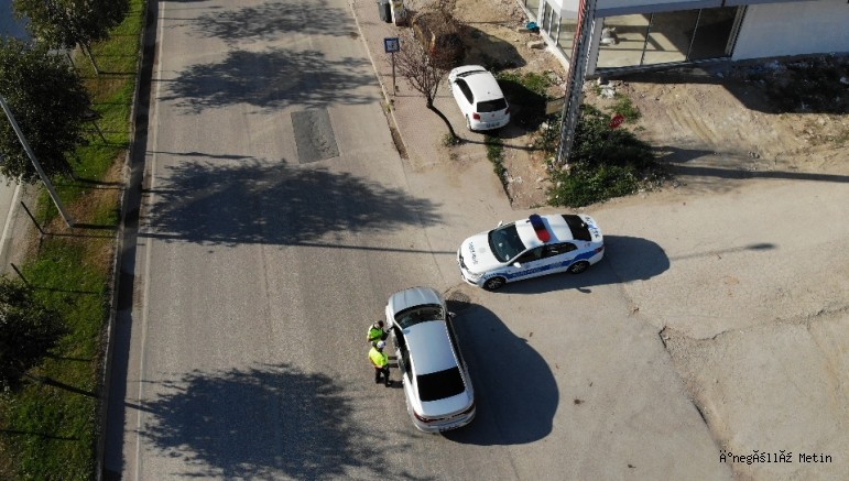 Drone destekli gerçekleştirilen uygulama kapsamında kırmızı ışık ihlali yapan, hız kurallarına uymayan ve çeşitli kuralları ihlal eden sürücüler drone ile tespit edilerek haklarında cezai işlem tatbik edildi.
