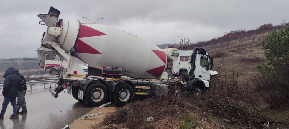 Olay, İnegöl Mobilya İhtisas Organize Sanayi Bölgesi'nde meydana geldi. Fatih Ş idaresinde 16 YC 193 plakalı beton mikseri, yokuş aşağı inerken sürücüsünün kontrolünü kaybetmesi sonucu yol kenarındaki bariyerleri aşıp uçurumun kenarında durdu. Sürücü, yaşadığı dehşetin ardından araçtan yara almadan çıktı.