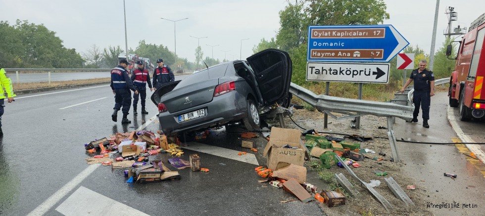 Kaza, saat 15.40 sıralarında Bozüyük’ten İnegöl istikametine seyir halindeki Mesut S. (49) idaresindeki 16 BIN 102 plakalı otomobilin, başka bir aracın sıkıştırması sonucu kontrolden çıkarak köprülü kavşak bariyerlerine çarpmasıyla meydana geldi.