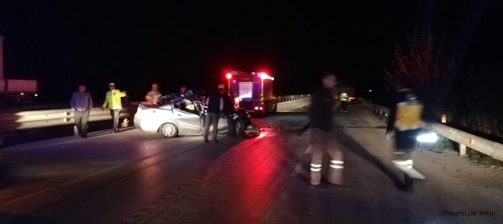 Çarpmanın itkisi ile savrulan özel otomobilde bulunan Mustafa Şanlı, Mehmet Poyraz (60), Ali Alpak (39), Şevki Koca (59) ve Ali Ayaz (71) araç içerisinde sıkıştı.