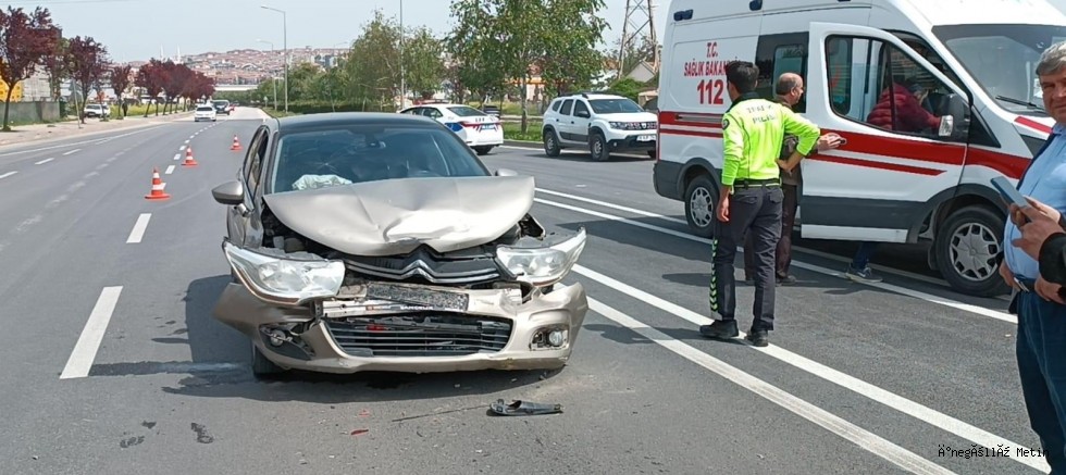 Çarpmanın etkisi ile otomobil sürücüsü ile otomobil içinde bulunan İrem A. (20) yaralandı.