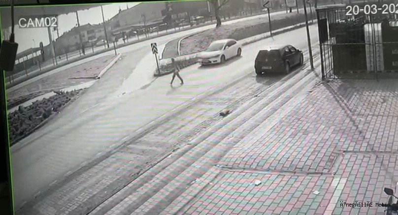 Öte yandan otomobilin E.Ş.’ye çarpma anı bölgedeki bir işletmenin güvenlik kamerasına yansıdı.