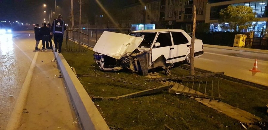 Kontrolden çıkan otomobil orta refüjdeki demir bariyerlere çarparak durabildi.