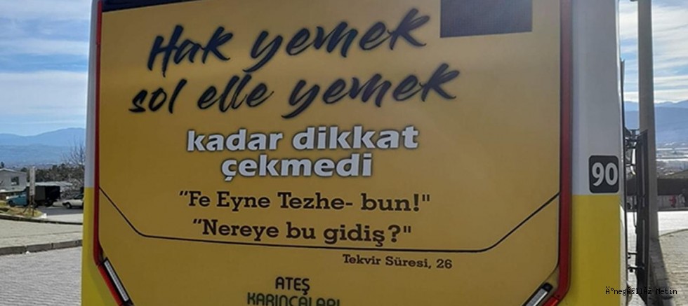 İnegöl’de faaliyet gösteren Ateş Karıncaları Gençlik Hareketi isimli dernek ilçede bulunan özel halk otobüslerin arkasında verdiği reklam görenlerinin dikkatinde kaçmadı. Hazırlanan ilanda şu ifadelere yer verildi. “Hak yemek sol elle yemek kadar dikkat çekmedi” sözleri yer aldı. İnegöl'de dikkatleri üzerine geçen bu reklam bir çok kişi tarafından sosyal medya hesaplarında paylaşıldığı gözlendi.