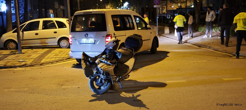 Edinilen bilgilere göre, İrfan Y. yönetimindeki 16 BRC 552 plakalı hafif ticari araç, dönüş yapmak istediği sırada karşı yönden gelen Mustafa Ş. (21) yönetimindeki 16 KHT 52 plakalı motosikletle çarpıştı.