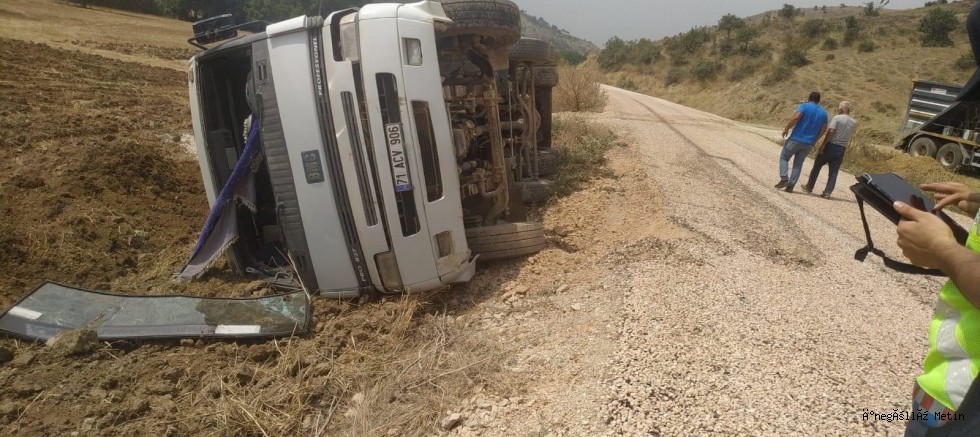 Edinilen bilgilere göre kaza Kırsal Çavuşköy'de meydana geldi. Mehmet Şirin Gül ( 34 ) kullandığı 71 ACV 906 plakalı hafriyat yüklü kamyon rampa aşağı indiği sırada sürücünün direksiyon hakimiyetini kaybetmesi sonucu devrildi. Kazada sürücü Mehmet Şirin Gül yaralandı. Yaralı hastaneye kaldırılarak tedavi altına alındı.