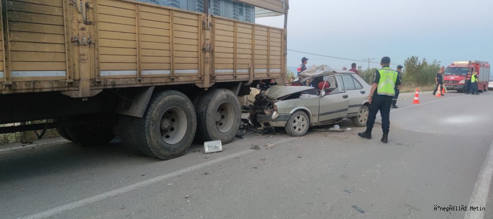 Sungurpaşa Mahallesi'nde önünde seyreden kamyona arkadan çarpan otomobilin sürücüsü yaralandı, otomobilde bulunan bir kişi ise yaşamını yitirdi.