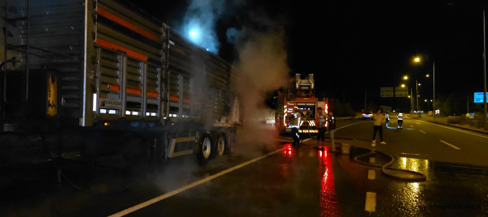 Edinilen bilgilere göre, İskenderun’dan yüklediği toz kömürü Bursa Çimento Fabrikası’na götüren İbrahim Erenuluğ yönetimindeki 66 ACB 947 plakalı tırın balatalarının ısınması sonucu dorsede yangın meydana geldi.
