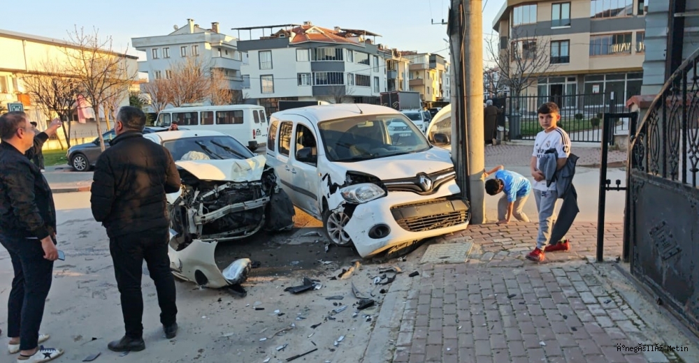 Çarpışmanın etkisiyle savrulan hafif ticari araç, yol kenarındaki beton direğe çarparak durdu. Kazada, otomobil sürücüsü Nihat G. hafif yaralandı.